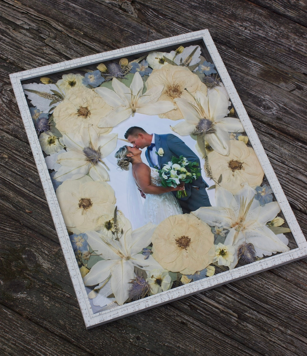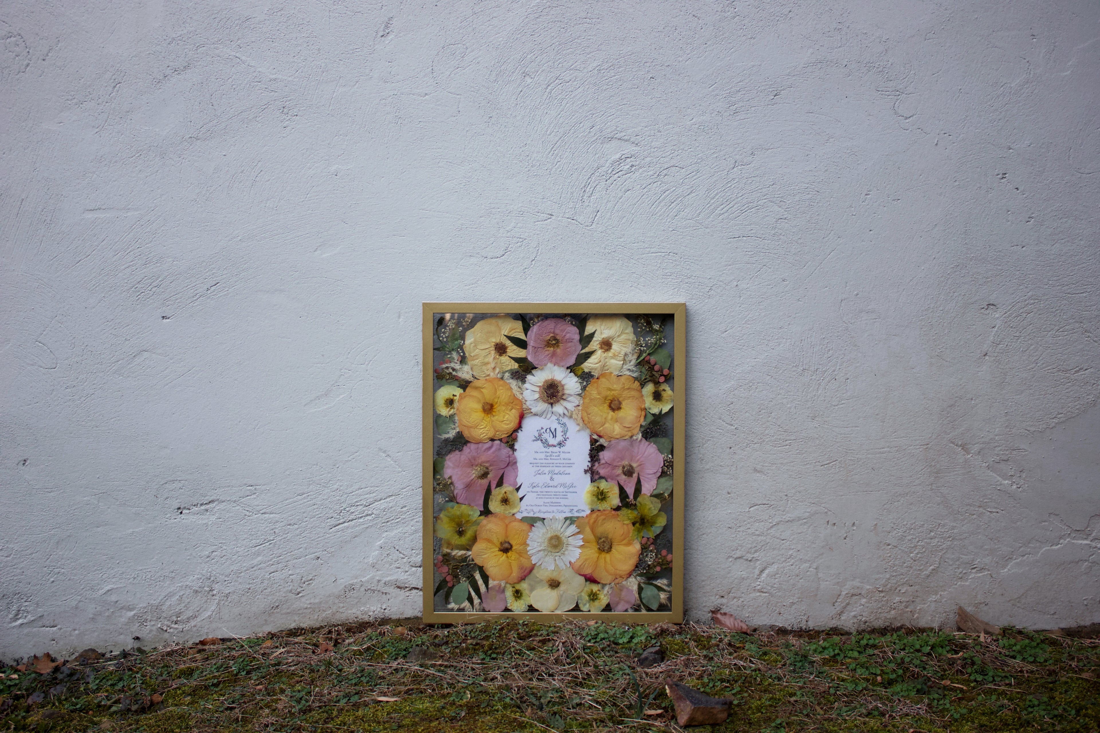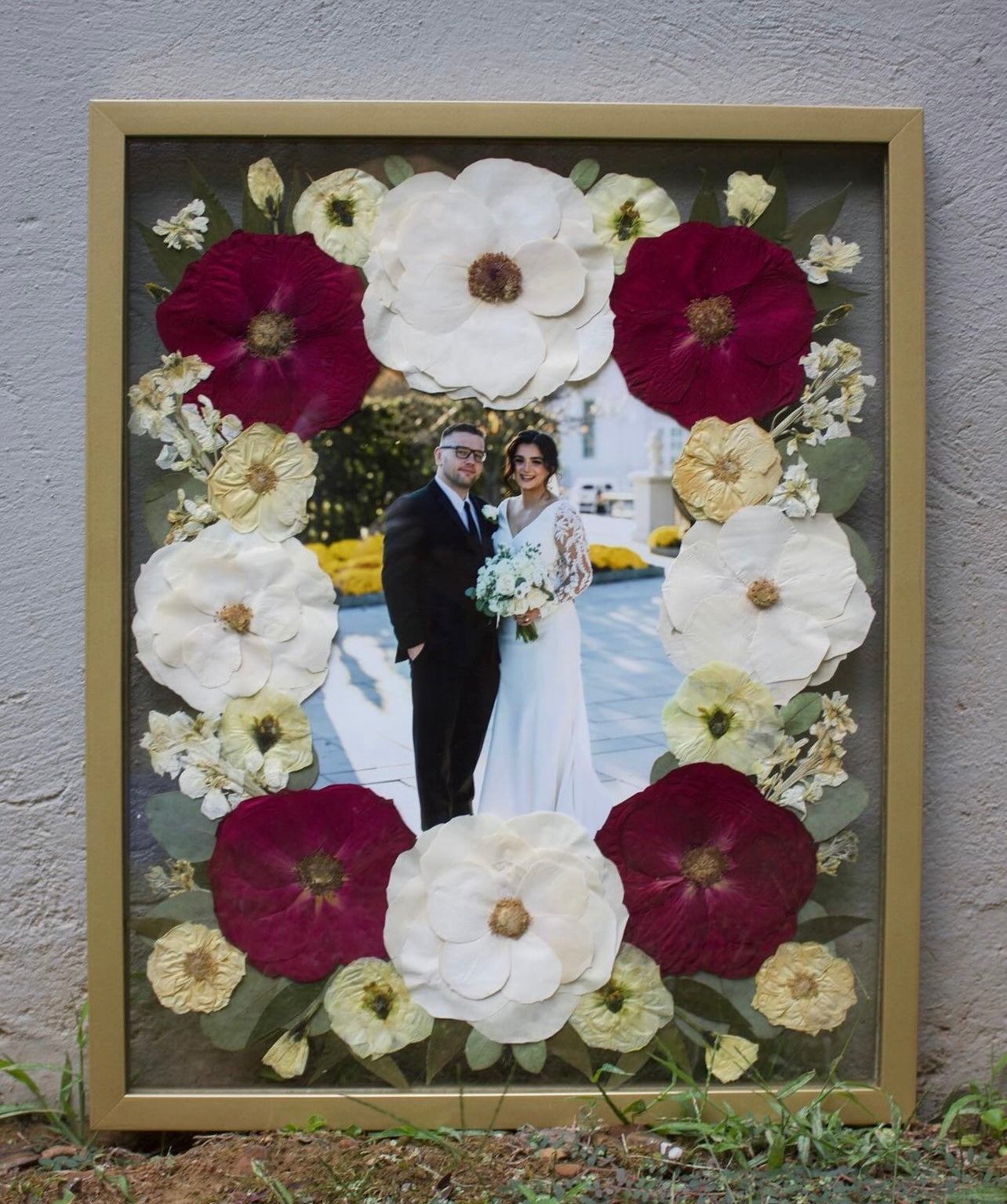 In addition to the main frame, gift your friends, bridal party members, and family pieces with sentimental flowers from your event